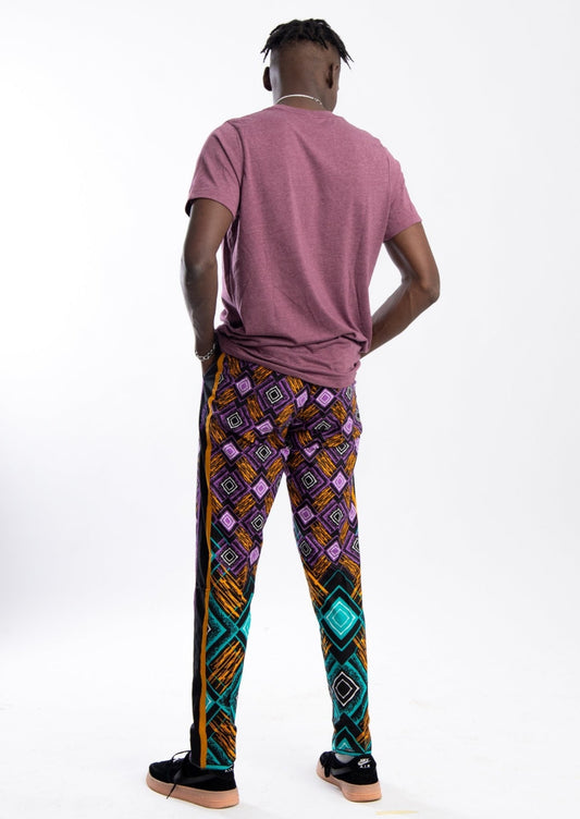 Purple pants with diamond shapes