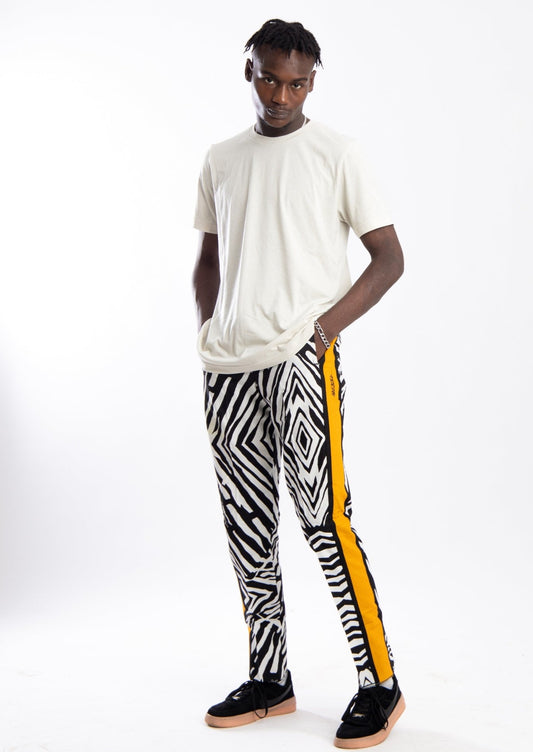 Zebra style pants with contrast yellow side strip