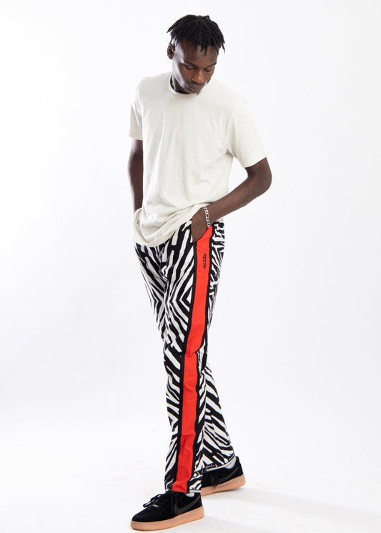Zebra style pants with contrast red side strip