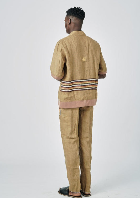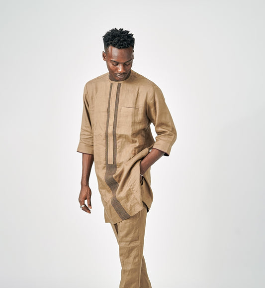 WORK SERIES-2-Piece Native Attire 3/4 Sleeves in Brown Linen
