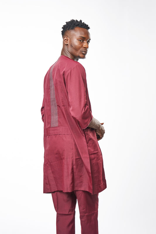 WORK SERIES-2-Piece Native Attire 3/4 Sleeves in Polished Wine cotton