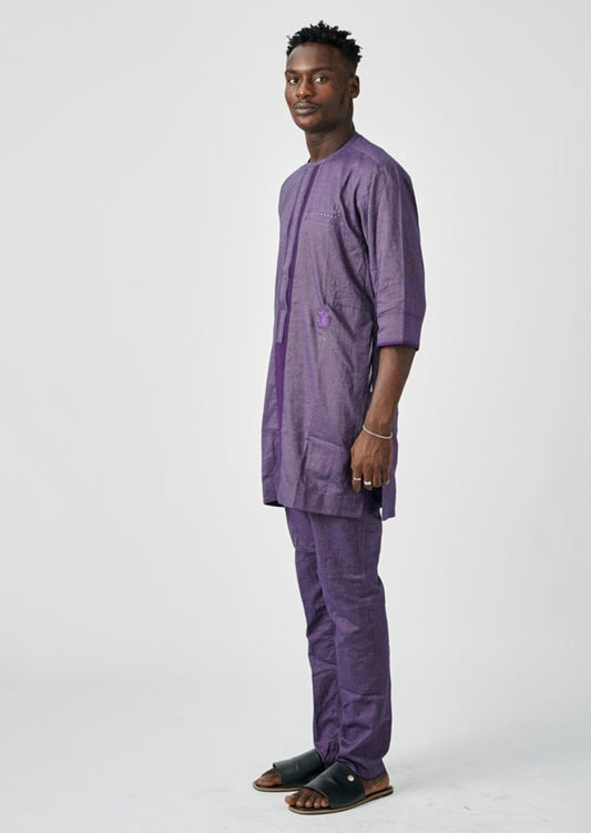 WORK SERIES-2-Piece Native Attire 3/4 Sleeves Purple cotton Asooke