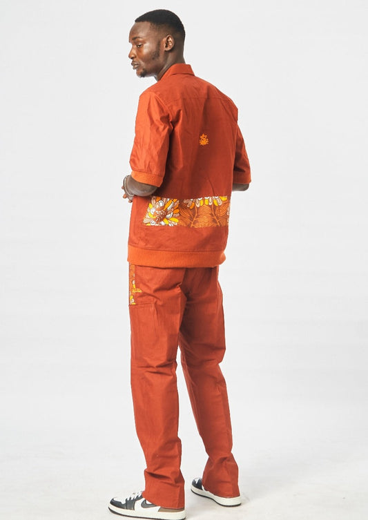 WORK SERIES-2-Piece Native Attire 3/4 Sleeves Brown Chambray Linen