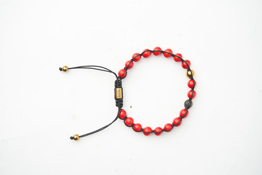SINGLE GEMSTONE MACRAME Bracelet made with pave beads - CORAL