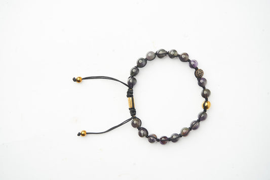 SINGLE GEMSTONE MACRAME Bracelet made with pave beads - AMETHYST