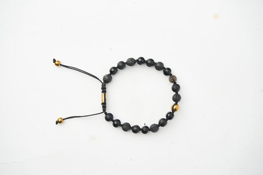 SINGLE GEMSTONE MACRAME Bracelet made with pave beads - LAVA ONYX
